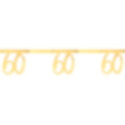 Dekorativ girlander av papp med skinnende gullfolie og tallet 60. Girlanderen er en utmerket dekorasjon til din 60-årsfest og hvert tall er 18 x 23 cm stort og selve girlanderen er 250 cm lang.