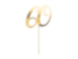 Lekker kakedekorasjon med motiv av tallet 60 i gullfolie. Morsomt å pynte kaken med til 60-årsfesten. Kakedekorasjonen er ca 19 cm stor.