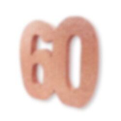 Veldig vakker og imponerende borddekorasjon som glitrer i rosegull. Dekorasjonen er formet som tallet 60 og blir et midtpunkt på bordet ditt til 60-årsdagen. Dekorasjonen er 19,5 x 20 cm stor.
