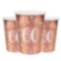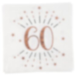 10 stk. hvite servietter med glitrende mønstre i roségull og tallet "70". Disse serviettene er elegante og ideelle for en 60-års bursdagsfest. Med tre lag gir de en luksuriøs følelse.