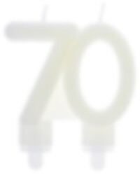 Kakelys som lyser i mørket, elegant formet som tallet 70. Kakelyset har en størrelse på 7,5 x 9 cm.