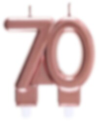 Kakelys i rosegull elegant formet som tallet 70. Kakelyset har en størrelse på 7,5 x 9 cm.