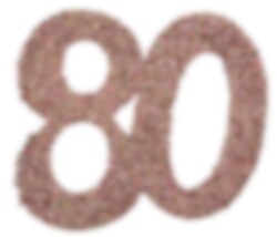 6 stk. glitrende store konfetti i rosegull til å dekorere med på 80-årsfesten. Konfettien er formet som tallet 80 og er 4 x 6 cm store. De er laget av papp.