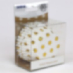 30 stk hvite muffinsformer med gullfolierte prikker. Bruk disse for å bake søte bakverk til bursdagen eller festen. Formene er ca 5 cm i bunnen.