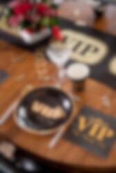 10 stk. lekre servietter i svart med teksten VIP i gullfolie. Disse serviettene er perfekte hvis du vil arrangere en temafest, en filmvisning eller en release-fest for spesielt utvalgte gjester.