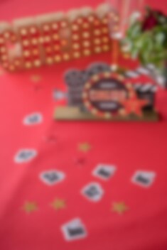 Herlig konfetti mix med film og kinorelaterte motiver. Fine å pynte bordet med til en Hollywood-temafest. Konfettien er 2,5 x 2,5 og 1 x 1 cm stor og totalt er det 50 stykker i en pakke.