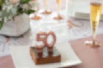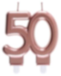 Kakelys i rosegull elegant formet som tallet 50. Kakelyset har en størrelse på 7,5 x 9 cm.