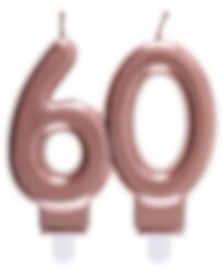 Kakelys i rosegull elegant format som tallet 60. Kakelyset har en størrelse på 7,5 x 9 cm.