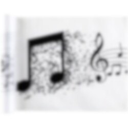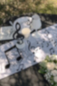 Hvit bordløper med dekorative mønstre av svarte musikknoter. Bordsløperen er perfekt hvis du vil arrangere en temafest hvor musikken står i sentrum.