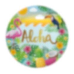 Dekk bordet til sommerfest med disse fargerike tallerkenene i Aloha-tema. Det livlige motivet med flamingo, tukan, blomster, palmblader, ananas, kokosnøtt og vannmelon skaper en herlig tropisk følelse som passer perfekt til hawaiibursdag, poolparty eller andre festlige anledninger i sommerlig stil.