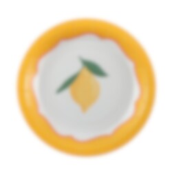 Sommerlige asjetter med sitronmotiv som passer perfekt til piknik, hagefest, sommerfest og andre feiringer med et lyst og sommerlig preg. Den gule kanten sammen med sitronen i midten gir borddekkingen et friskt og dekorativt uttrykk som føles elegant.