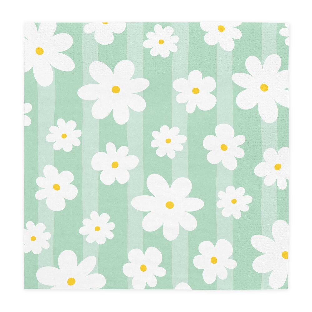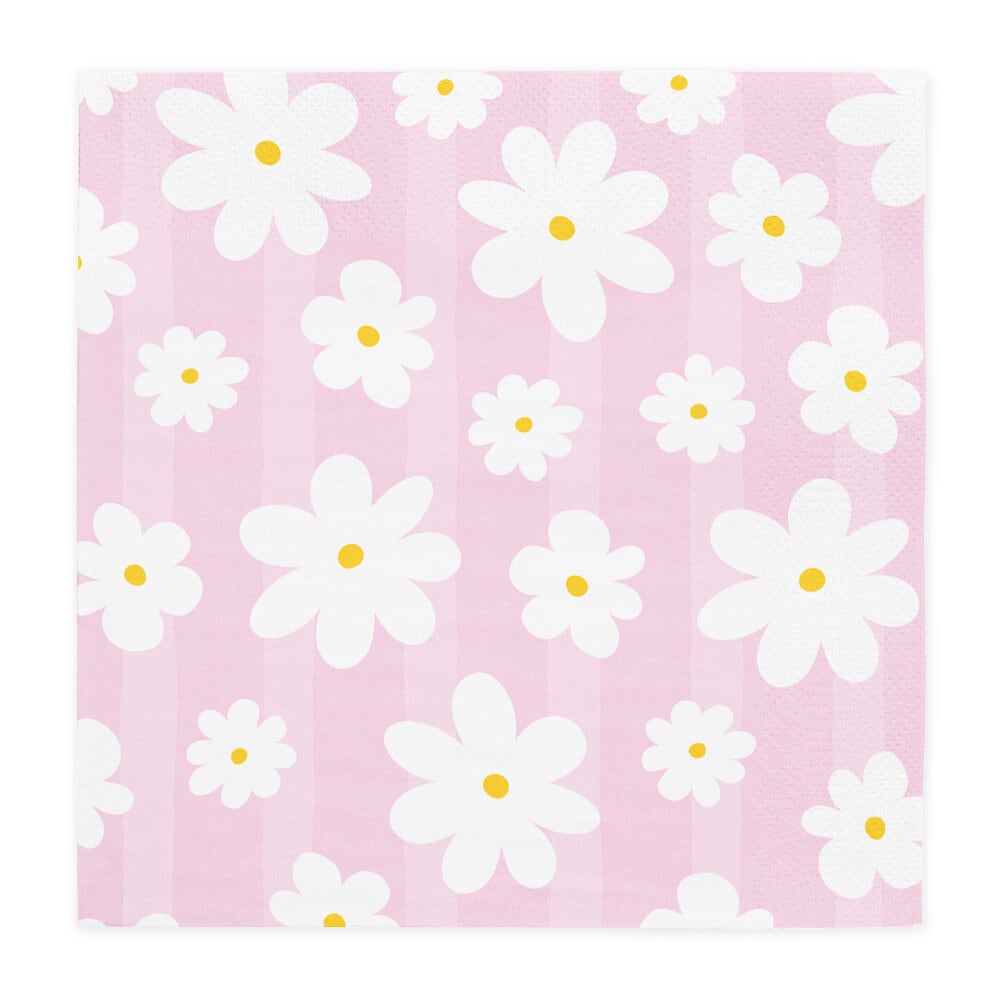 Dekk opp til en sommerlig og sjarmerende fest med disse fine serviettene i myke pastellfarger. Serviettene kommer i lilla, mintgrønt, rosa og aprikos og er dekorert med hvite tusenfryd, noe som gjør dem til en leken og innbydende detalj til bursdag, babyshower, piknik eller sommerfest.