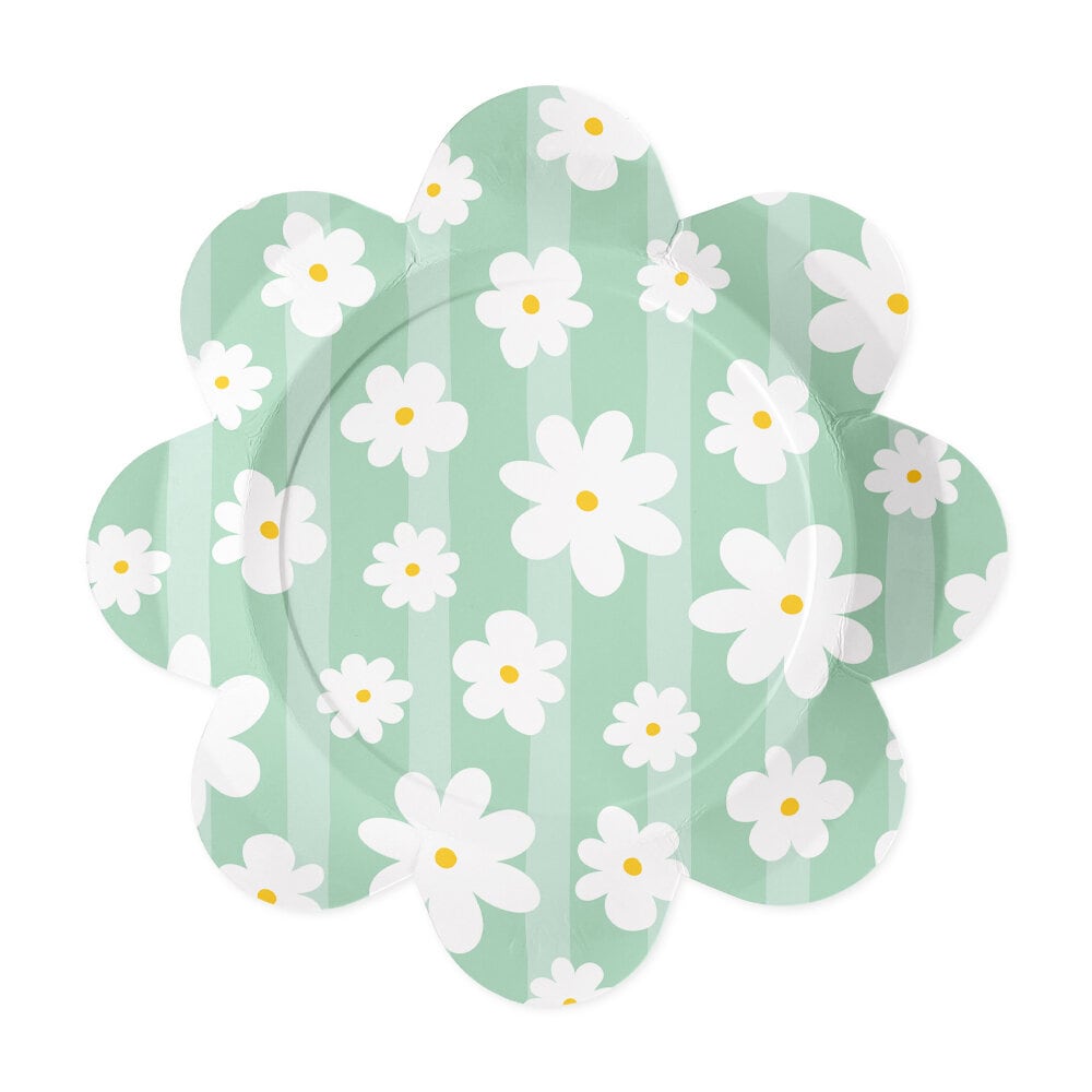Dekke på til en sommerlig og sjarmerende fest med disse fine tallerkenene i blomsterform. Tallerkenene kommer i myke pastellfarger som rosa, blått og grønt, og er dekorert med hvite tusenfryd, noe som gjør dem til et fint innslag til bursdag, babyshower, piknik eller sommerfest.