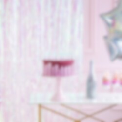 Dørdekorasjon i skinnende perlemor/hvit farge. En flott dekorasjon å henge opp i en døråpning eller på veggen for å pynte til festen, bursdagen eller babyshower. Dørdekorasjonen er ca 90 x 250 cm stor.