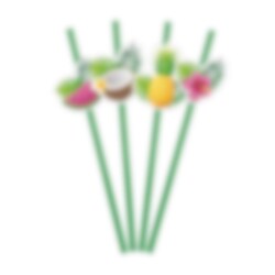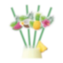 Gjør serveringen ekstra sommerlig med disse fine pappsugerørene med tropiske frukter og blader. Dekorasjonene med vannmelon, kokosnøtt, ananas, blomster og grønne blader gir drikkene et fargerikt og festlig uttrykk som passer perfekt til sommerfest, Hawaii-bursdag, poolparty eller andre feiringer i tropisk stil.