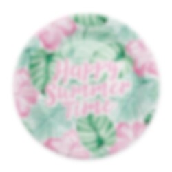 Dekk opp til sommerfest med disse fargerike tallerkener i tropisk stil. Med grønne blader, rosa blomster og teksten Happy Summer Time blir de en herlig detalj på bursdagsbordet og passer perfekt til sommerfest, poolparty, grillkveld eller fest med tropisk tema.