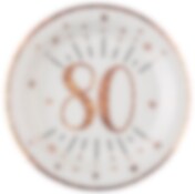 Papptallerkener Roségull Glitrende 80-årsfest 10 stk.